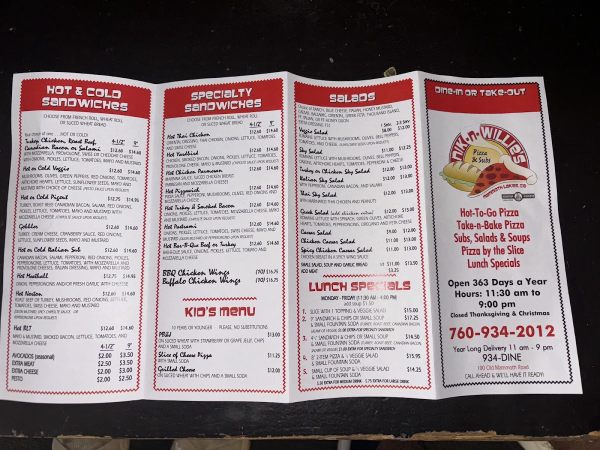 In conclusion, whether you’re in the mood for a satisfying pizza after a long hike or a mouthwatering sub, Nik-N-Willie's Pizza-n-Subs promises both quality and taste. It's a place where good food is served with a smile, and every meal feels like a win. Don’t miss out on this Mammoth Lakes staple during your next visit!